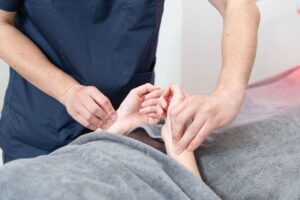 手足に鍼灸刺激を加えるとその刺激が脳幹に伝わりセロトニンの分泌を促します。