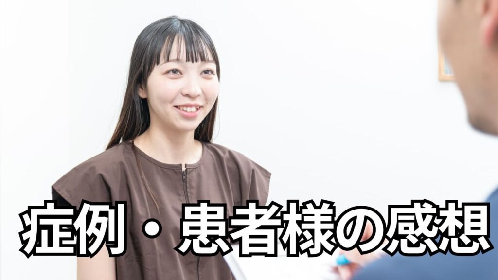 仕事のストレスと通勤時の満員電車でパニック障害になりました。毎朝、強い動悸と不安感に悩んで心療内科に通院していました。薬の服用で症状は抑えられてはいましたが、なかなか治らず悩んでいたところ、こちらを知り治療を受けに伺いました。今では悩んでいた動悸や不安感も解消され無事に仕事ができるようになりました。親身になって治療してくださりありがとうございます。