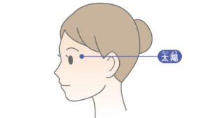 眉尻と目尻の中央からやや後ろの、こめかみ部分にあるくぼみです。眼精疲労による頭痛、目の充血、ドライアイ、めまいなどに効果が期待でき、目の周辺の血行を促進します。