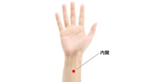 手首の内側、手首のしわの真ん中から指3本分ほどひじ側にあり、2本の腱の間に位置します。このツボは、吐き気、乗り物酔い、胃の不快感、不眠、不安感など、幅広い心身の不調に効果があるとされています。
